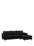 John Lewis Oliver II RHF Chaise End Leather Sofa, Light Leg, Matt Black