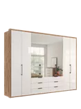 John Lewis Osaka 3m Bi-Fold Wardrobe with 4 Glass Doors, 4 Mirrored Doors & 6 Glass Drawers