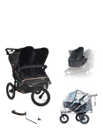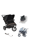 Out'n'About Nipper V6 Plus Double Pushchair Newborn & Toddler Bundle, Summit Black