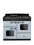 Rangemaster Classic Deluxe CLDLO110EIPBOR/AB1 110cm Electric Range Cooker with Induction Hob, Bordeaux, Stone Blue/Chrome