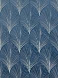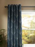 John Lewis Deco Fan Weave Pair Lined Eyelet Curtains, Navy