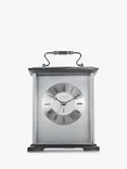 Libra Interiors Isosceles Curved Front Roman Numeral Mantle Clock with Leather Handle, Silver/Brass