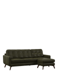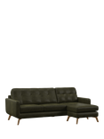 John Lewis Barbican RHF Chaise Leather Sofa, Dark Leg, Green