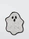 Halloween Beaded Ghost Coaster, White/Black