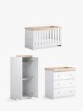 Little Acorns Burlington Cotbed, Changing Table Dresser and Double Wardrobe Bundle, White/Oak