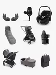 Bugaboo Dragonfly Pushchair, Carrycot & Accessories with Maxi-Cosi Pebble 360 Pro2 i-Size Car Seat & Base Bundle, Grey Melange/Black