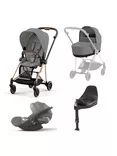 Cybex Mios Pushchair, Carrycot & Cloud T PLUS i-Size Car Seat with Base T Bundle, Rose Gold/ Mirage Grey
