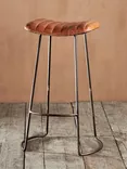 nkuku Narwana Ribbed Leather Stool, 75cm, Aged Tan