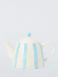 Hand Painted Stripe Stoneware Teapot, 850ml, Light Blue