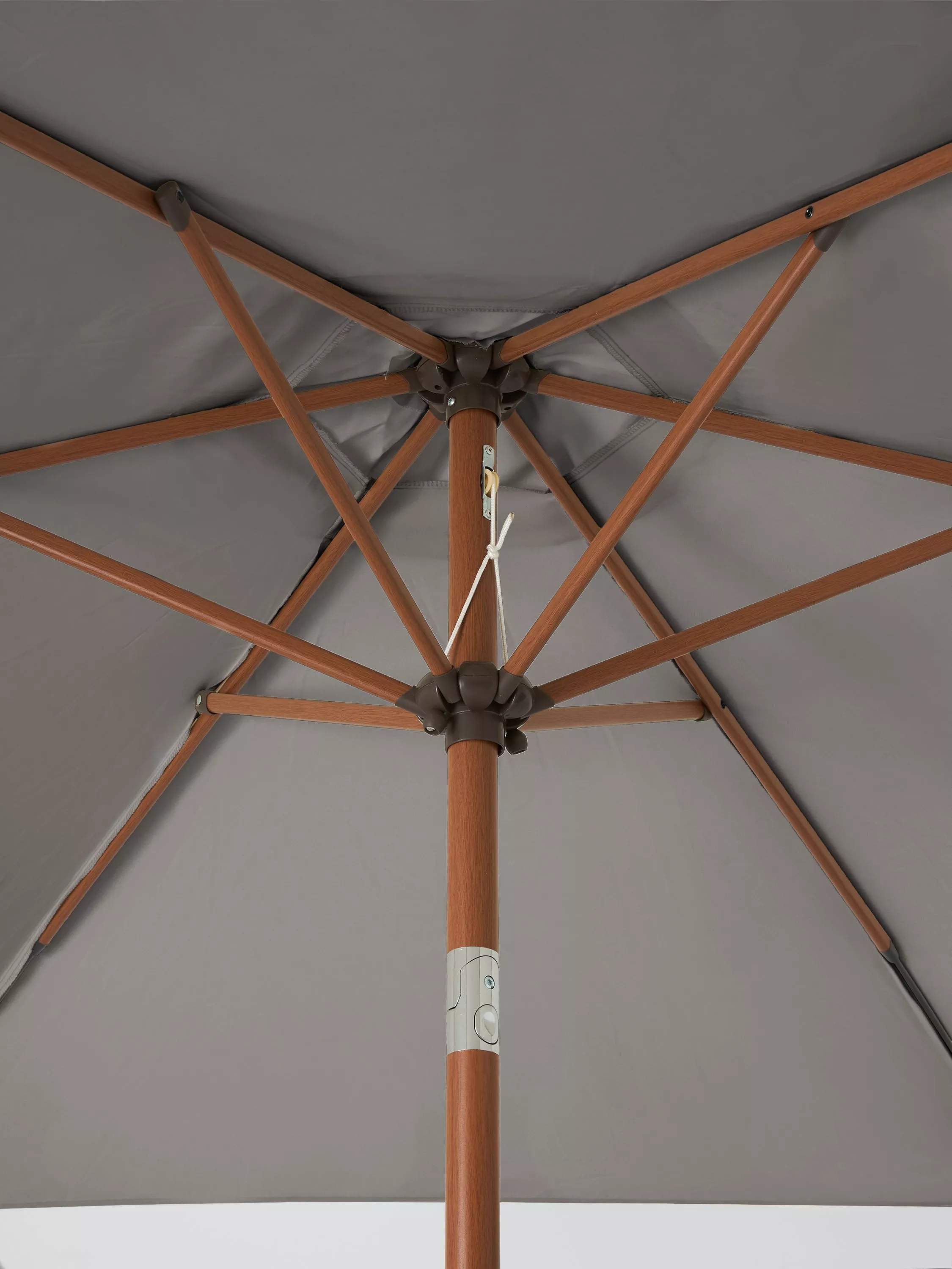 John Lewis Wood-Effect Wind-Up Parasol, 2.2m, Grey