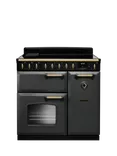 Rangemaster Classic Deluxe CLDL90EIP 90cm Electric Range Cooker with Induction Hob, Slate/Antique Brass