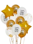 Happy New Year Balloons, Pack of 12, Gold/White