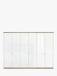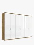 John Lewis Elstra 300cm Wardrobe with Glass Hinged Doors, White Glass/Bianco Oak