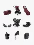 Bugaboo Dragonfly Pushchair, Carrycot & Accessories with Cybex Cloud T i-Size Rotating Car Seat & Base Bundle, Dark Cherry