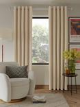 John Lewis Textured Weave Pair Blackout Lined Pencil Pleat Curtains, Natural