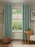 John Lewis Textured Weave Pair Blackout Lined Pencil Pleat Curtains, Light Green