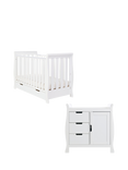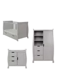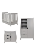 Obaby Stamford Classic Sleigh Cotbed, Closed Changing Unit & Double Wardrobe Set, Warm Grey