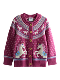 Monsoon Kids' Fair Isle Frill Cardigan, Pink