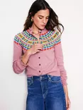 Boden Fae Fair Isle Frill Wool Blend Cardigan, Old Rose Pink