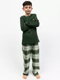 Minijammies Kids' Fern Jersey Top & Brushed Cotton Check Trousers Pyjama Set, Olive Green£25.00£17.50Reduced To Clear