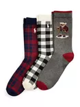 Email when available, Ralph Lauren Kids' Cotton Blend Holiday Bear Crew Socks, Pack of 3, Grey/MultiRalph Lauren Kids' Cotton Blend Holiday Bear Crew Socks, Pack of 3, Grey/Multi£17.00