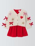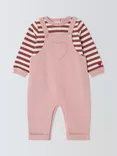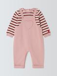 John Lewis Baby Heart Dungarees & Long Sleeve Top Set, Pink