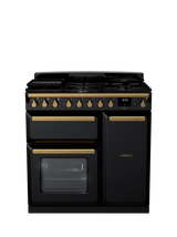 Rangemaster Edge Deluxe 90cm Dual Fuel Range Cooker with Gas Hob, Bordeaux/Antique Brass