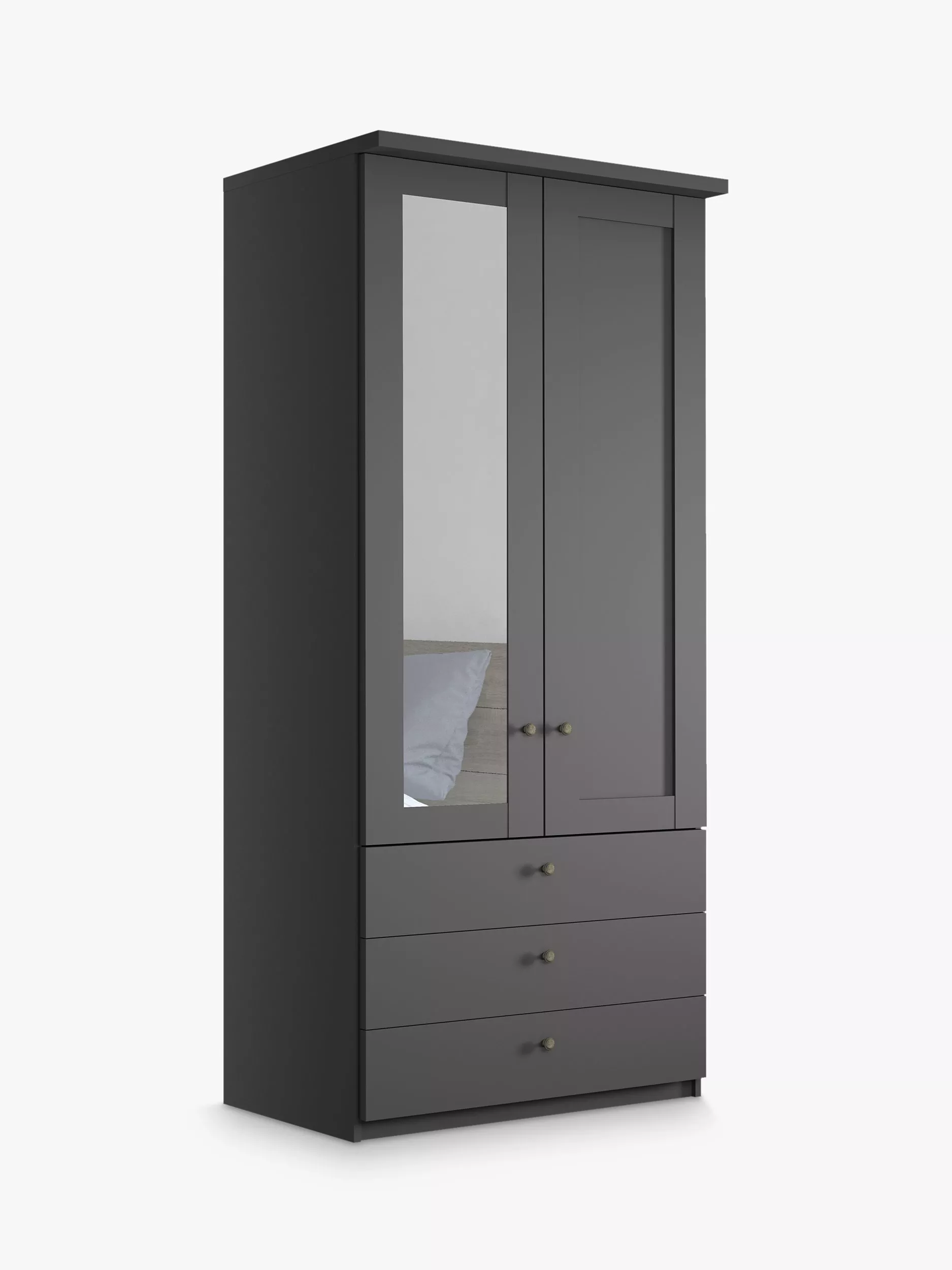 John Lewis Marlow 100cm Hinged Wardrobe with Right Mirror & 3 Drawers, Sage Green