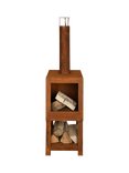 Fallen Fruits Square Chiminea Firepit with Log Store, Rust