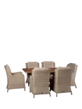 Bramblecrest Kuta Chedworth 6-Seater Rectangular Teak Wood Garden Dining Table & Rattan Chairs Set, Sandstone