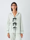 Bow Stripe Button Through Long Pyjama Set, Light Sage