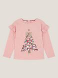 Monsoon Kids' Cotton Sequin Christmas Tree T-Shirt, Pink
