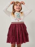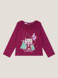 Monsoon Kids' Cotton Christmas House Long Sleeve Top, Burgundy