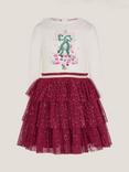 Monsoon Kids' Long Sleeved Christmas Tree Dress, Red