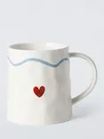 Flora Wiggle Heart Fine China Mug, 450ml, White/Blue