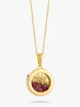 Rachel Jackson London Personalised Small Deco Sun Birthstone Amulet Necklace, Gold, Garnet - January