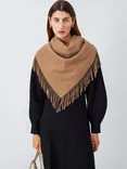 John Lewis Fringe Wool Triangle Scarf, Camel Marl
