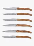 Stainless Steel Steak Knives & Filled Knife Block, Set of 6, Olive Wood