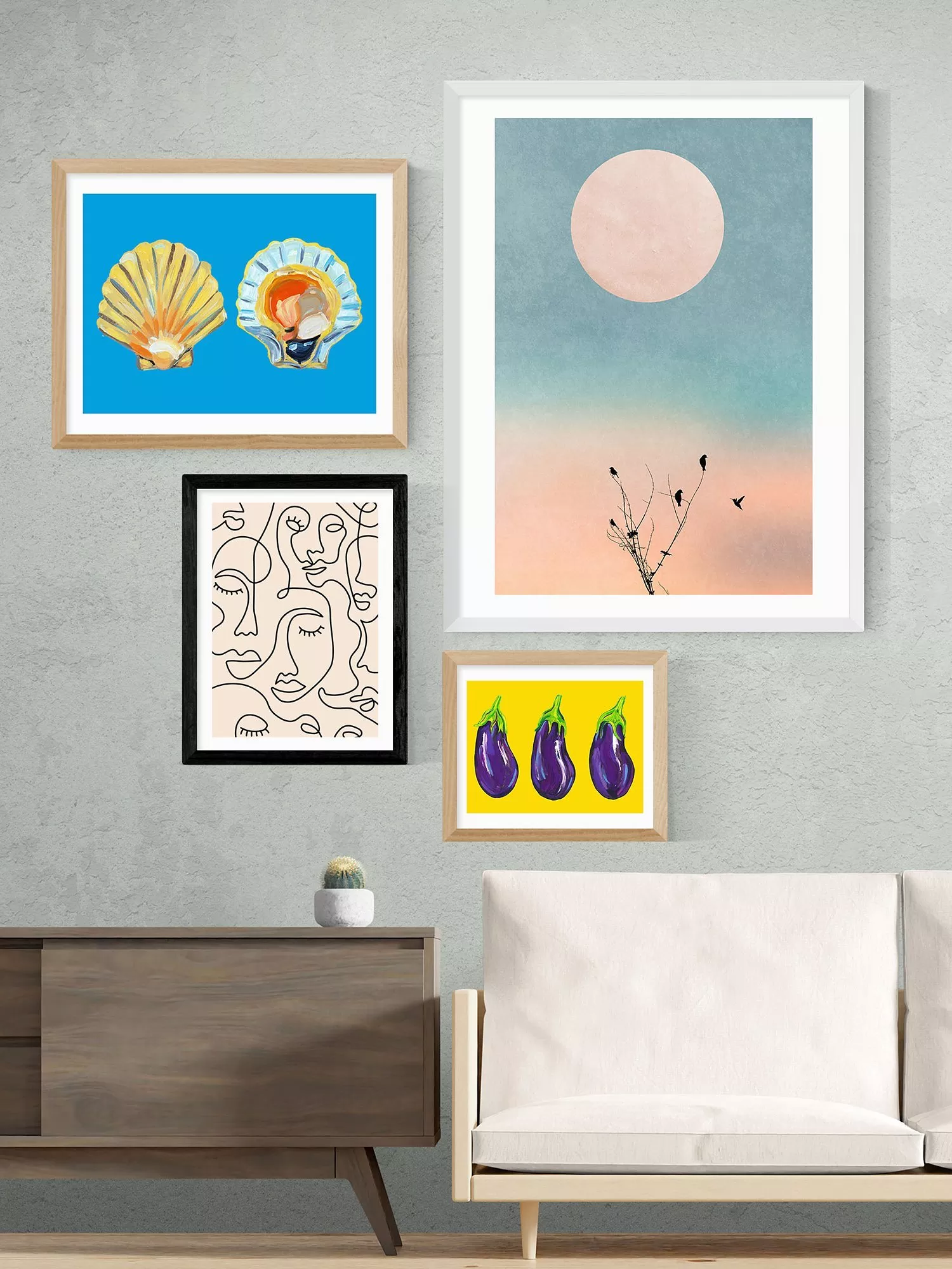 EAST END PRINTS Sundry Society 'Single Line Faces' Framed Print