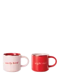 Early Bird Night Owl Stoneware Mugs, Set of 2, 355ml, Pink/Red