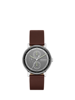 SKW6941 Men's Round Leather Strap Watch, Grey