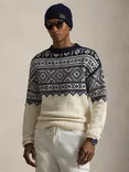 Polo Ralph Lauren Cotton with Cashmere Fair Isle Crew Neck Jumper, Cream Combo