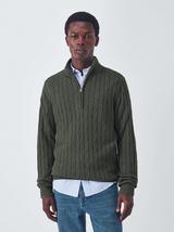 LUKE 1977 Duke Zip Up Sweater, Mid Marl Grey/Cream