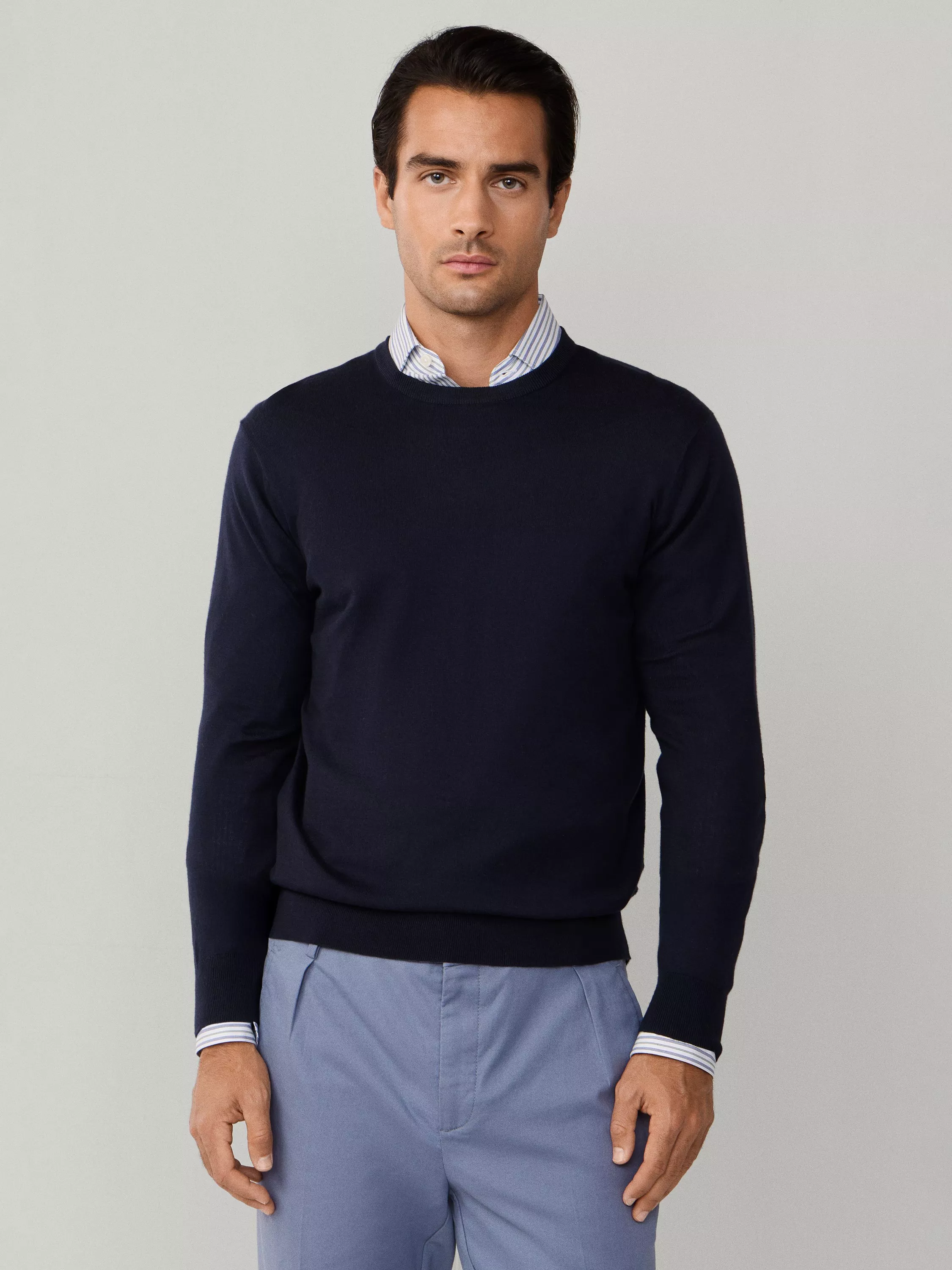 Hackett LondonCotton Blend Crew Neck Jumper£170.00Peach Orange is availableEton Blue is availableOxford Blue is availableOld Navy is availableTin Grey is available+ More colours available