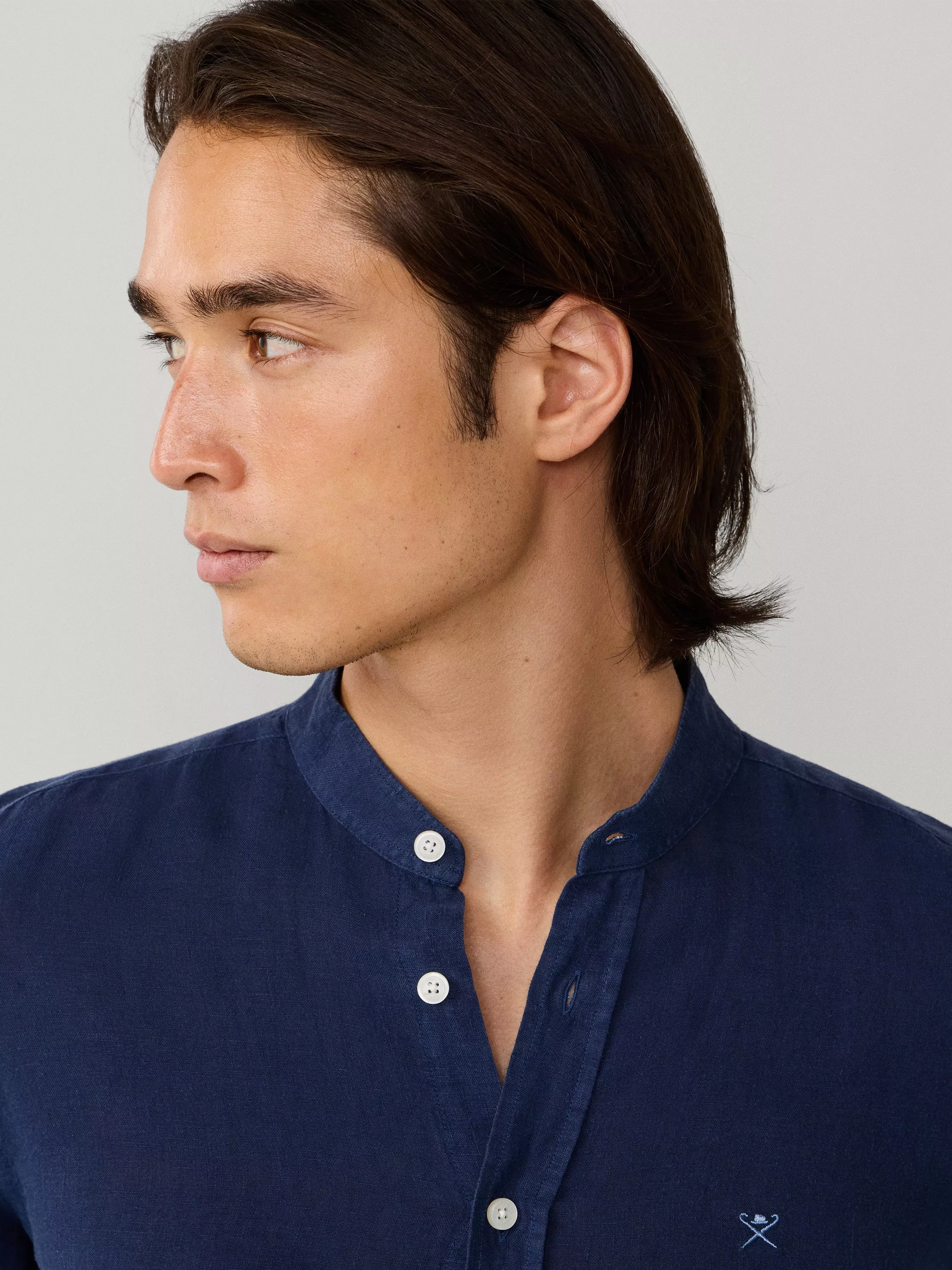 Hackett LondonGarment Dyed Linen Tailored Fit Grandad Collar Shirt£130.00Taupe Beige is availableThames Blue is availableOld Navy is availableSage Green is availableOptic White is available+ More colours available