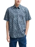 NN.07 Freddy Cotton Regular Fit Shell Print Shirt, Navy Blue