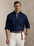 Ralph Lauren Polo Ralph Lauren Big & Tall Linen Regular Fit Plain Logo Shirt, Rustic Navy, Rustic Navy