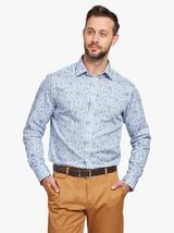 Cotton Tailored Fit Paisley Fish Print Shirt, Light Blue