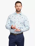 Cotton Tailored Fit Floral Sketch Print Shirt, White/Blue