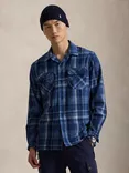 Aubin Ravendale Wool Regular Fit Herringbone Overshirt, Navy